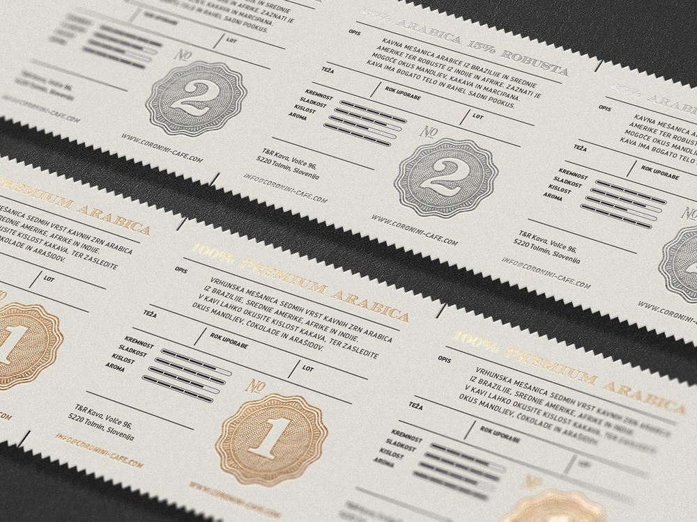 Coronini Cafe oozes opulence. Black on black gives off an air of confidence, while the font and graphics look like they’re fit for a king. Gold and silver foil immediately express a sense of premium quality, attracting customers who truly want to revel in a delicious cup of coffee and not just get one and go.