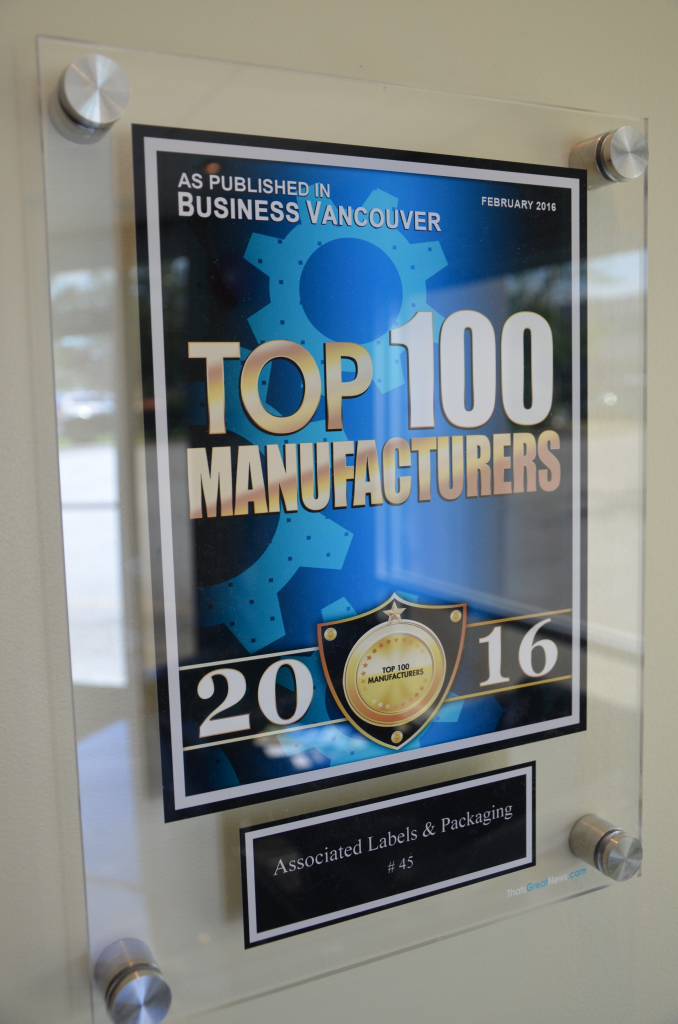 BUSINESS VANCOUVER MAGAZINE; Awards Associated Labels with #45 out of 100 companies in the Metro Vancouver Region.
