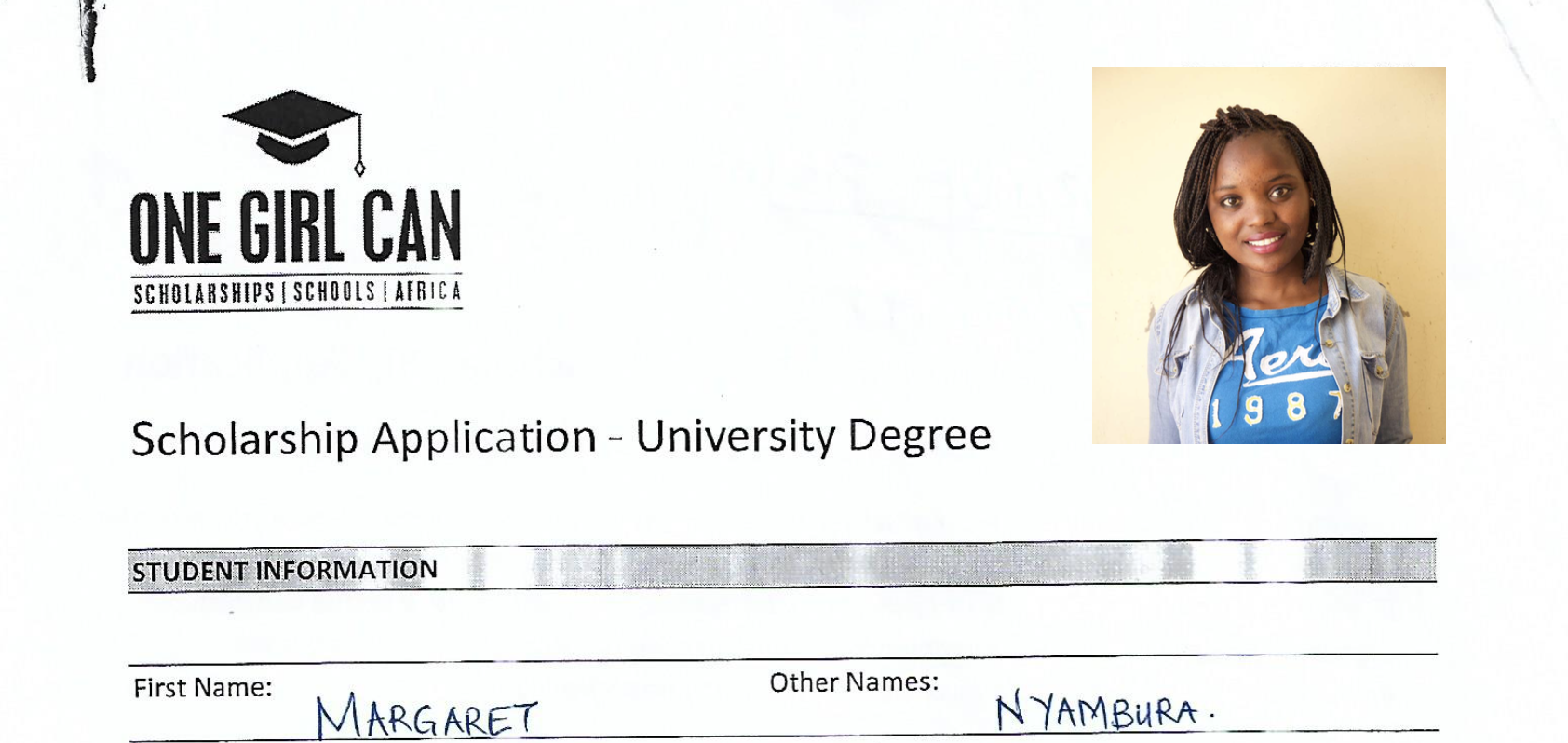 Subject: One Girl Can - University Scholarship Donation
